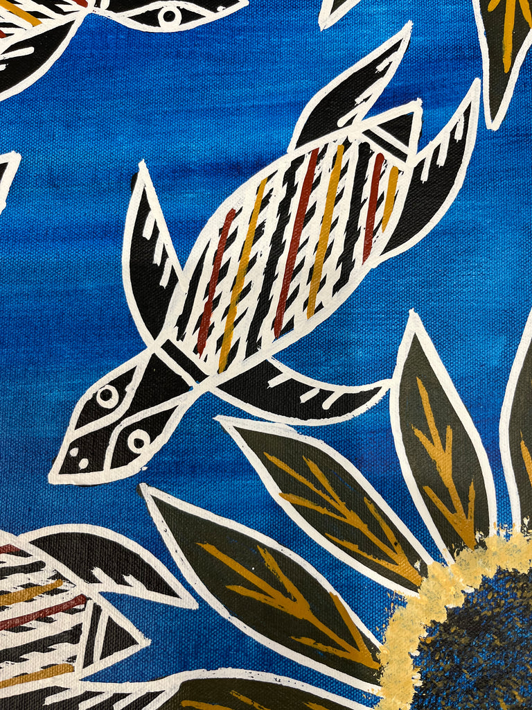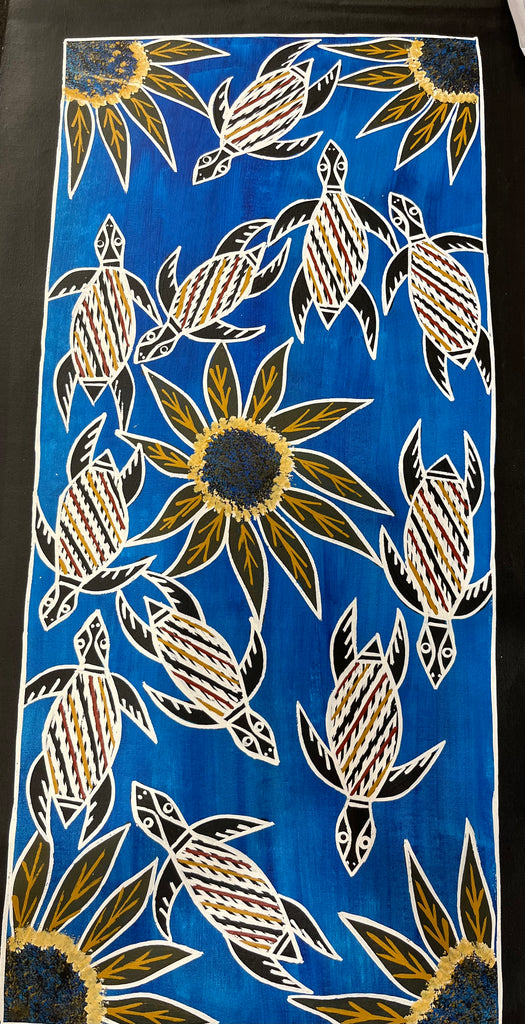 #136 Turtle Dreaming (Blue) - CHRISTINE BURARRWANGA ARTIST: 90cm x 43cm