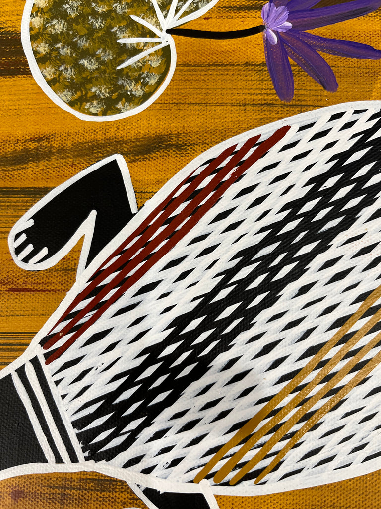 A Yolngu woman deeply connected to her culture, Christine has inherited her artistic style from her mother which comes from her ancestors’ knowledge, lore, and stories.