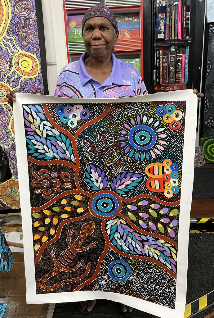 #184 Collecting Bush Food & Goanna - JACINTA NUMINA : Aboriginal Art: 71cm x 98cm