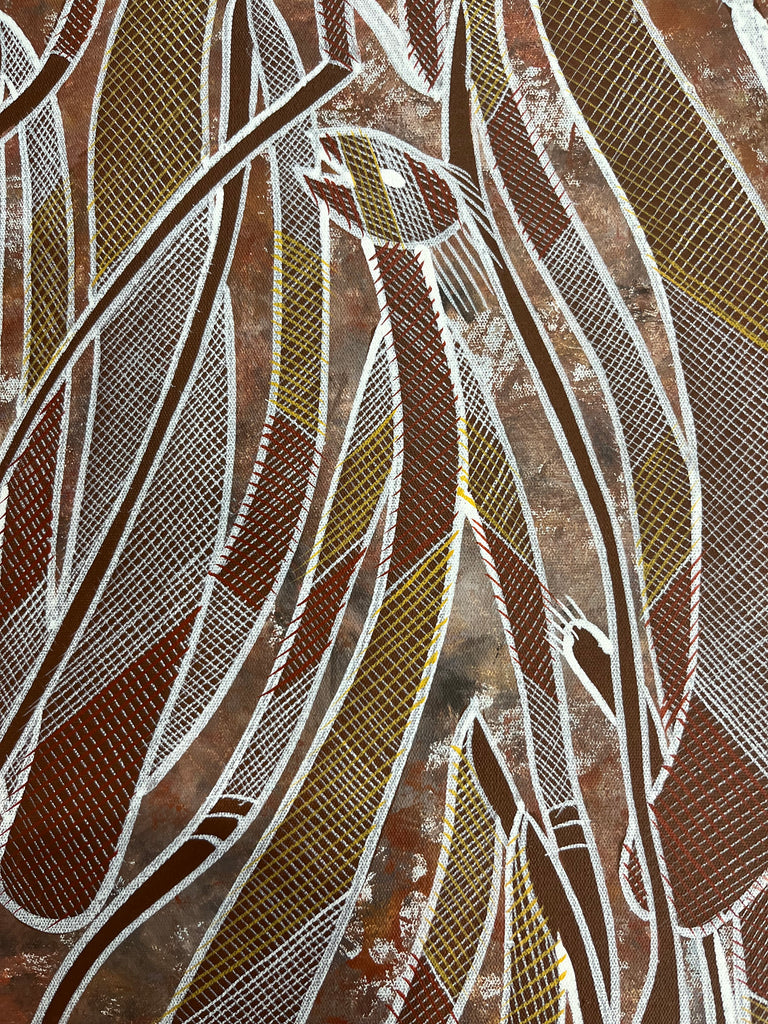 Whilst helping at Beswick Station his Grandfather Fred Blitner showed him the artifacts that the old men did and how they painted on bark. Eddie was keen to learn and started to help the old men. His cousin David Blanazi helped teach Eddie the old men's ways and the stories.