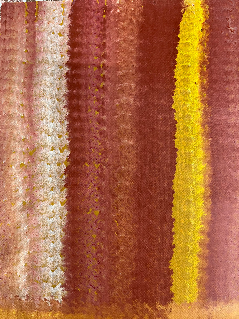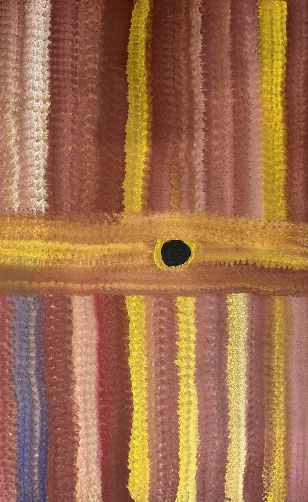In a response to the land of his birth, Barney Ellaga used extraordinary colour compliments to contour Alawa terrains. His fresh approach gives impact and power to these abstract pieces and as a consequence his work is in high demand.