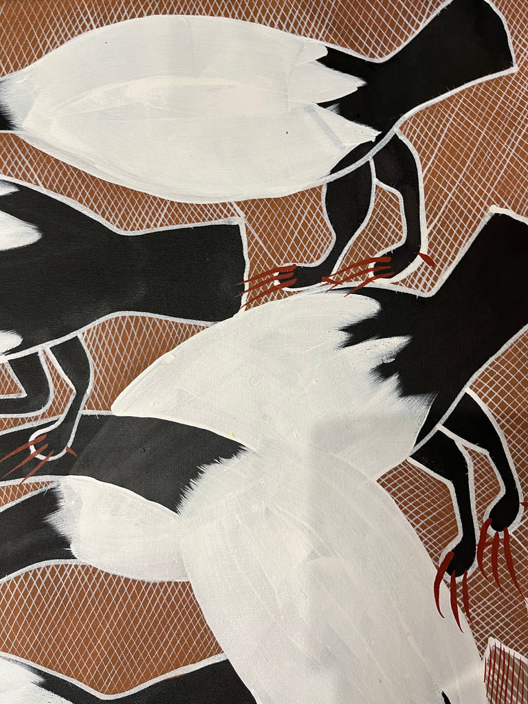 #392 Magpie Geese Dreaming - EDDIE BLITNER : Aboriginal Art: 152cm x 88xm