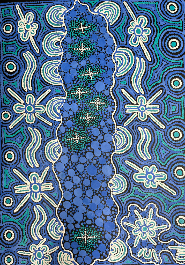 #6 Seven Sisters (Blues) - TREPHINA SULTAN THANGUWA: Aboriginal Art: 69cm x 95cm
