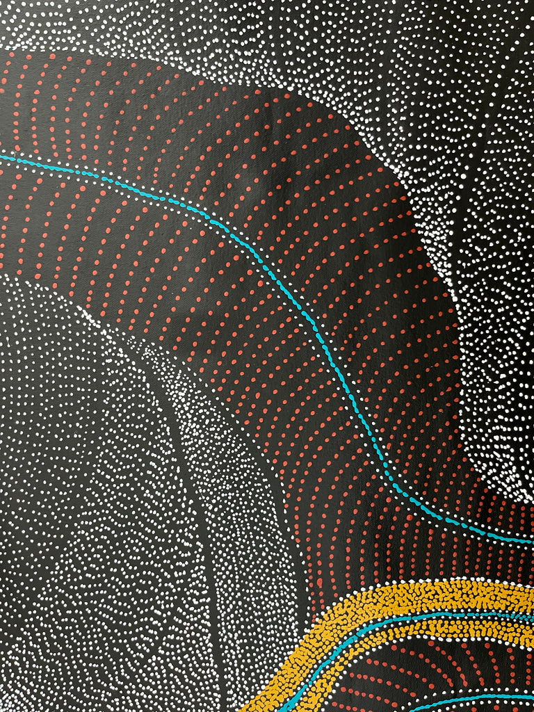Currently residing and creating her masterpieces at Mulga Bore, a community approximately 200 km from Alice Springs, Anna has recently expanded her horizons, sharing her art with the world. Her artistic odyssey began during her childhood, surrounded by some of the region's most esteemed artists. In 1996, she took the leap into her professional artistic career.