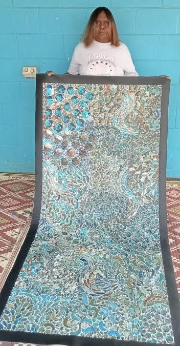 #324 Bush Yam Dreaming (Kookaburra) - RACHAEL NAMBULA: Aboriginal Art: 87cm x 200cm