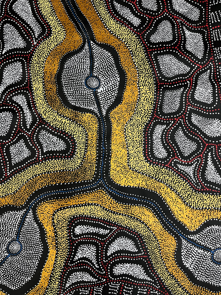 Beyond her artistry, Anna embodies tradition and actively participates in Women's Business, immersing herself in the Dreaming stories of her family and culture. She is well-educated and serves as a remarkable ambassador not only for her people but also for the rich artistic heritage of Utopia.