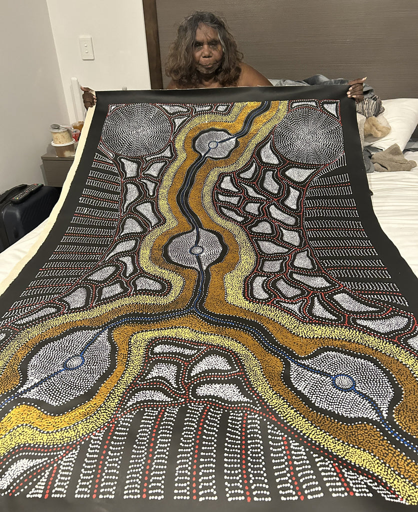 Currently residing and creating her masterpieces at Mulga Bore, a community approximately 200 km from Alice Springs, Anna has recently expanded her horizons, sharing her art with the world. Her artistic odyssey began during her childhood, surrounded by some of the region's most esteemed artists. In 1996, she took the leap into her professional artistic career.