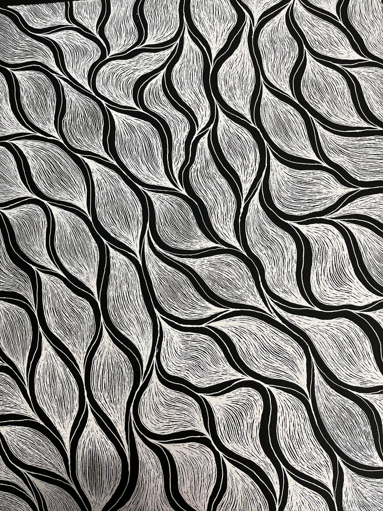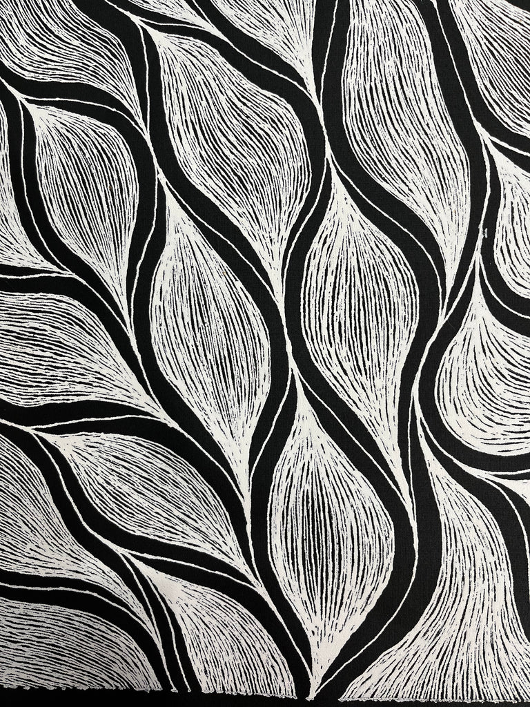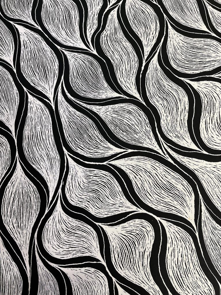 #91 My Country (Black/White) ARTIST: DELVINE PETYARRE 72cm x 93cm