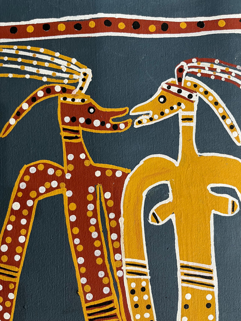 Without a written language, painting was the only way in which the history and religion of the tribe could be passed down, thereby ensuring that future generations would know of the deeds of these Ancestral Beings who walked the earth in the beginning of time.