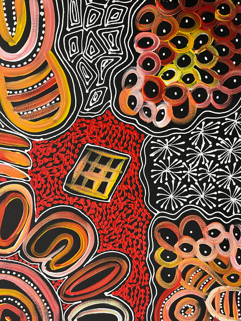 #402 My Country Dreaming (Sunset) - SHARON NUMINA : Aboriginal Art: 70cm x 90cm