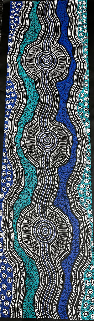 #353 Emu Dreaming (Blues) - SHARON NUMINA : Aboriginal Art: 54cm x 200cm
