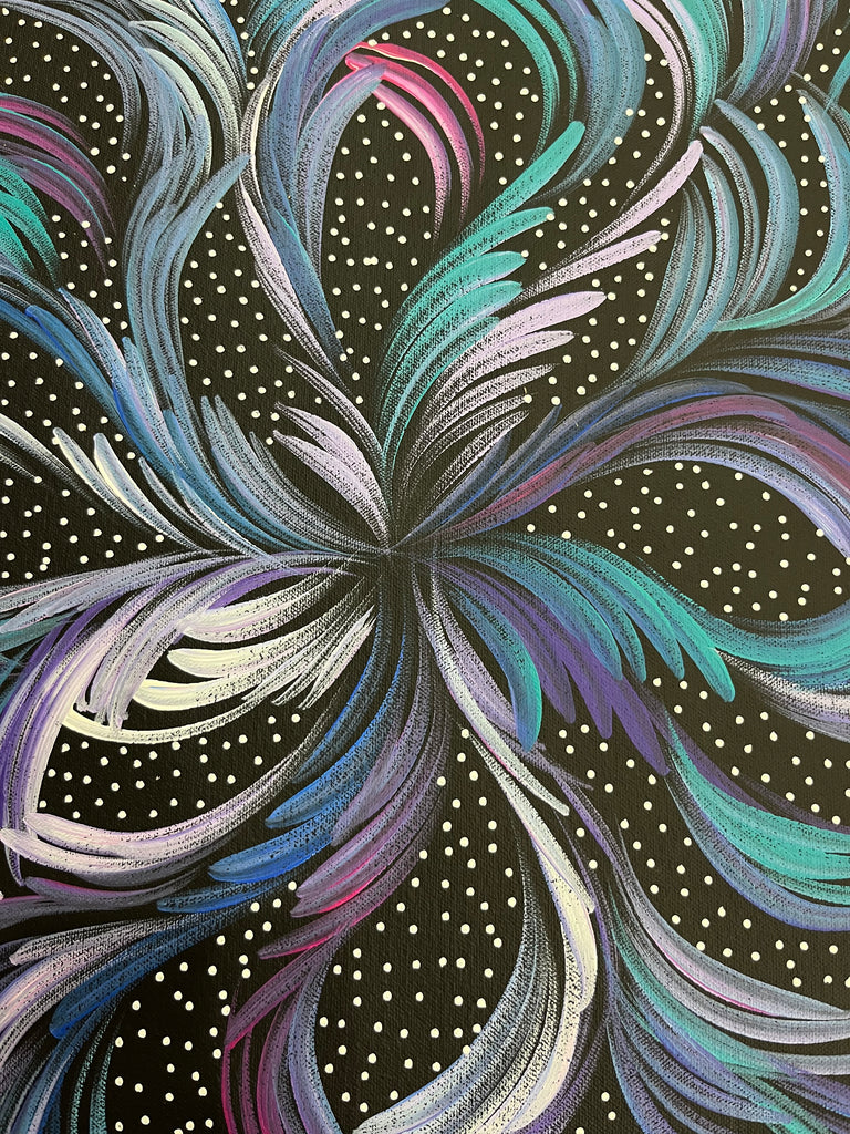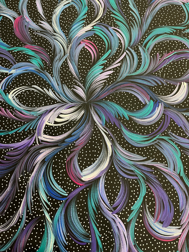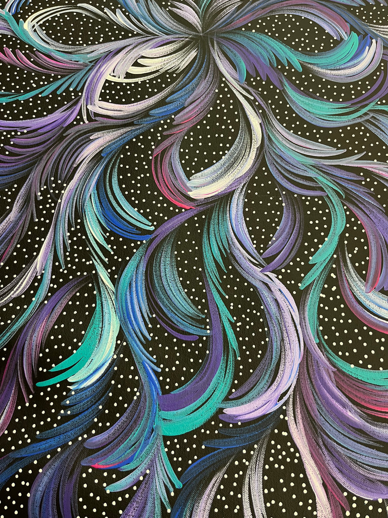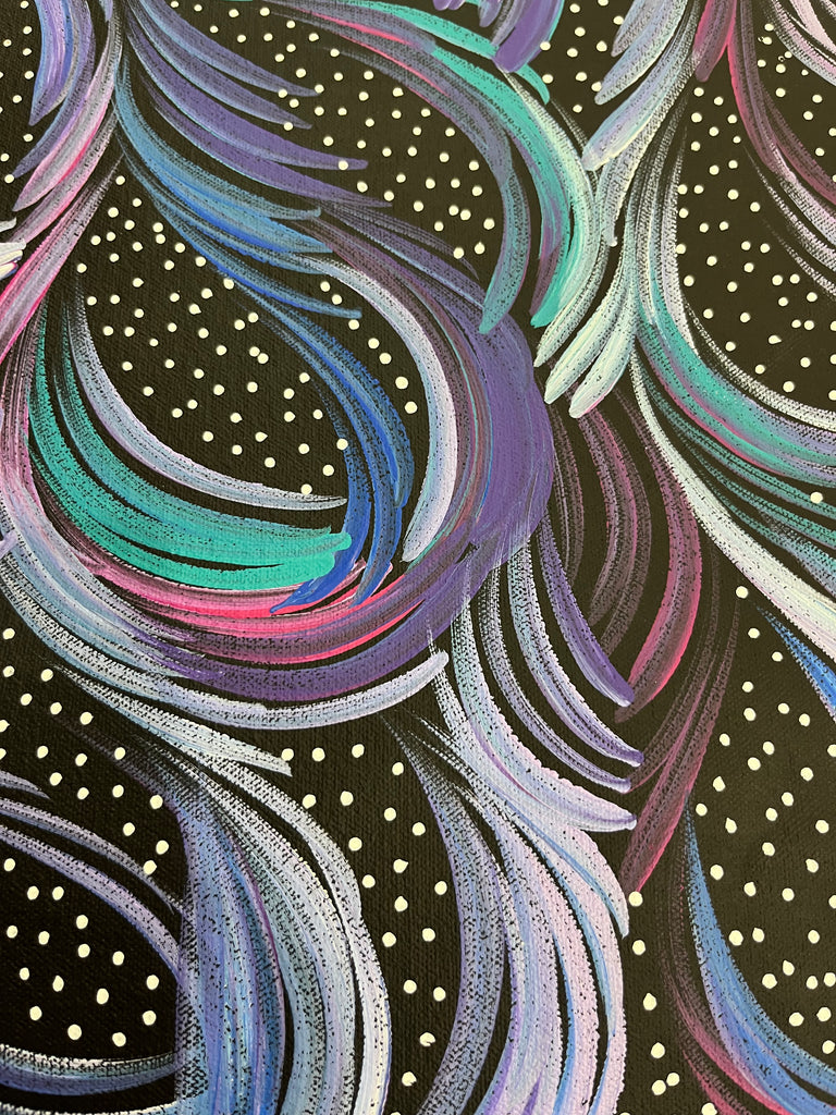 Selina paints many stories from her family and is also a strong teacher to the next generation.  Selina is currently teaching some of her nieces to paint